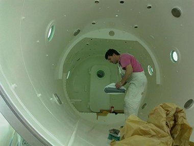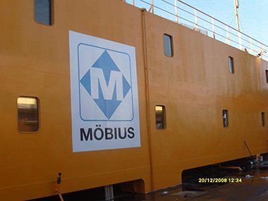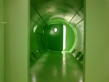 Grinding and coating work on the entire living module (inside and outside), the stairs and on the deck