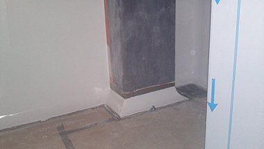 Preparation of coating on walls and floors, filling of the mastic asphalt area with epoxy mortar. Production of the fillets with special fabric and filler, as well as subsequent top coating
